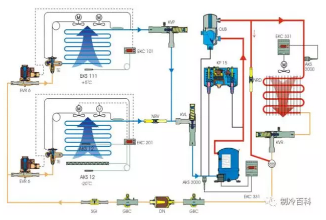 氨制冷系統(tǒng):一般在大型冷凍庫(kù)中應(yīng)用。