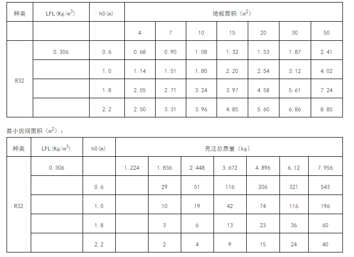 1)安裝前請先閱讀說明書,根據(jù)說明書要求選擇合適安裝場所(如安裝房間面積要求,不同冷媒的使用面積詳見下表)。并對安裝場所進(jìn)行安全檢查,確保沒有明火和潛在點(diǎn)火源(包括吸煙在內(nèi)),并控制隔離可燃材料。