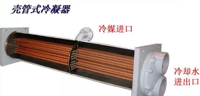 冷凝器:將制冷壓縮機排出的高溫高壓氣態(tài)制冷劑予以冷卻、使之液化,以便制冷劑在系統(tǒng)中循環(huán)使用 。
