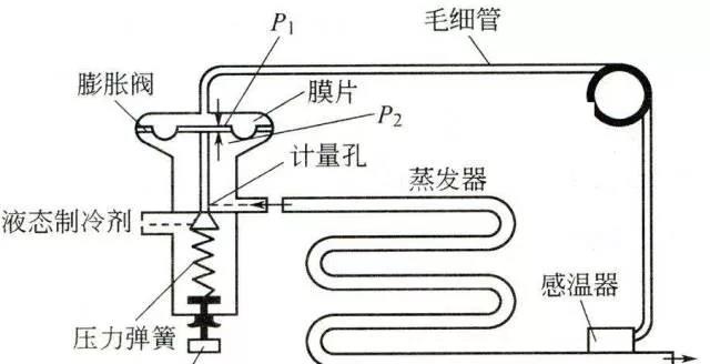 a.對高壓液態(tài)制冷劑進行節(jié)流降壓,保證冷凝器和蒸發(fā)器之間的壓力差,以使蒸發(fā)器中的液態(tài)制冷劑在要求的低壓下蒸發(fā)吸熱,從而達到制冷降溫的目的;同時使冷凝器中的氣態(tài)制冷劑,在各頂?shù)母邏合路艧崂淠?/span>