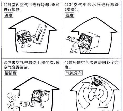 空調四要素:溫度,濕度,清潔度與氣流分布是所謂空調的四大要素,對四個要素加以調節(jié),能夠控制室內環(huán)境以達到舒適的要求。